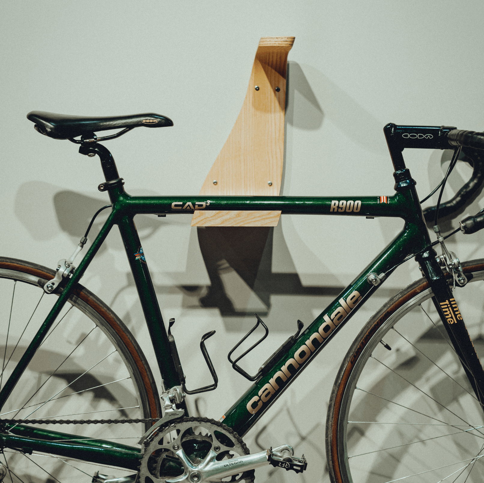 Das Bike Rack ist die stylische Wandhalterung für Ihr Fahrrad, gefertigt aus Echtholzfunier. Es verwandelt Ihr Rennrad in ein Wohnzimmer Statement und ist für Lenkerbreiten bis 46 cm geeignet. Verfügbar in Kirschbaum, Esche und Räuchereiche.