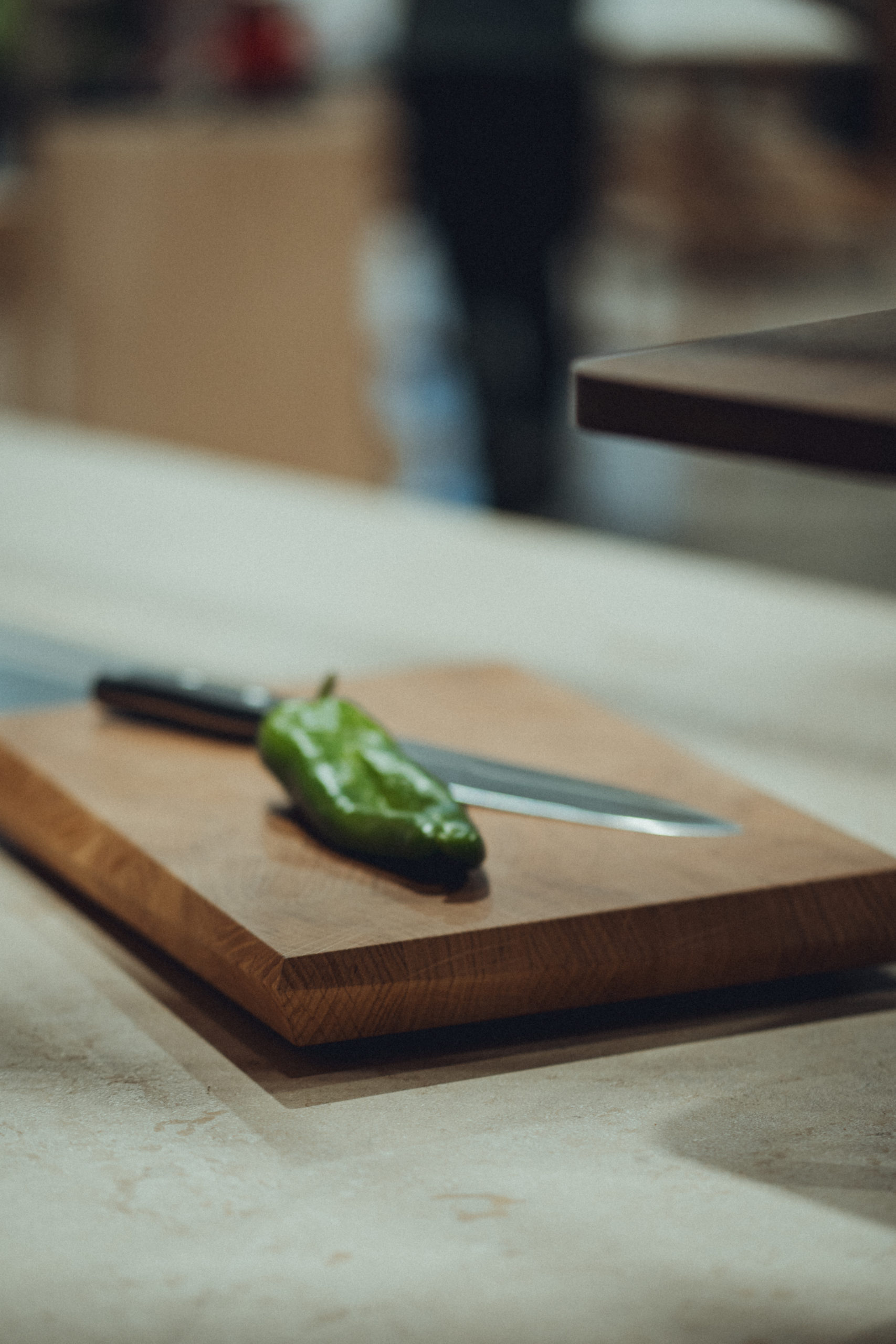 Hirnholzbrett „Obliquus“ aus Hohenloher Eiche, präzise gefertigt in unserer Schreinerei in Kirchberg. Umlaufende, verlaufende Fase für klare Kontur und ergonomisches Handling. Natur geölt, mit rutschfesten Füßen.