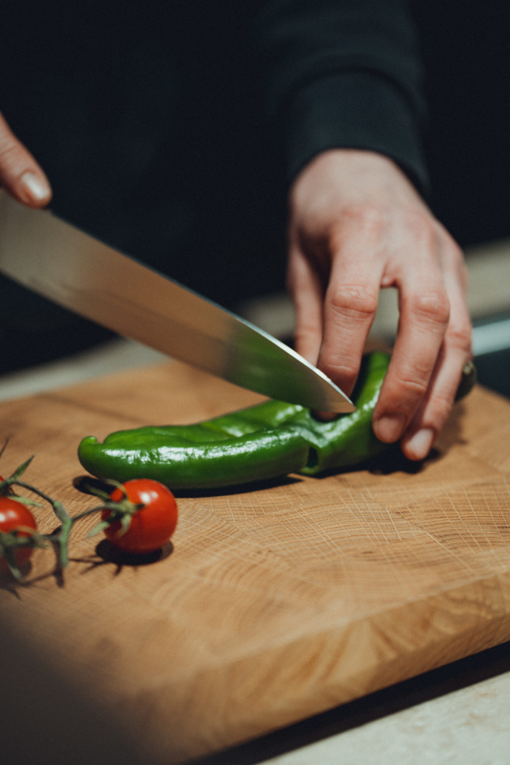 Endholz ist messerschonend: Die senkrecht stehenden Fasern nehmen den Schnitt auf und schließen sich zu einem Teil wieder, wodurch die Oberfläche lange sauber und plan bleibt. Wir schleifen in feinen Stufen, ölen natur mit lebensmittelechtem Öl und montieren formstabile Antirutschfüße für sicheren Stand auf glatten Arbeitsflächen. So entsteht ein Schneidebrett Eiche mit professioneller Haptik und belastbarer Nutzung – ein Werkzeug für alle, die Material, Machart und Detailtreue schätzen.